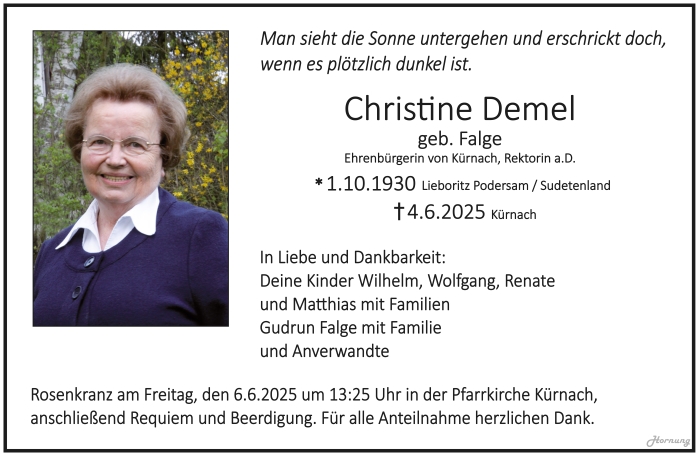 Die Trauerfeier fand am Freitag, den 6.6.2025 in der Pfarrkirche Kürnach statt. Das Requiem und die Beerdigung fand im Anschluß statt.