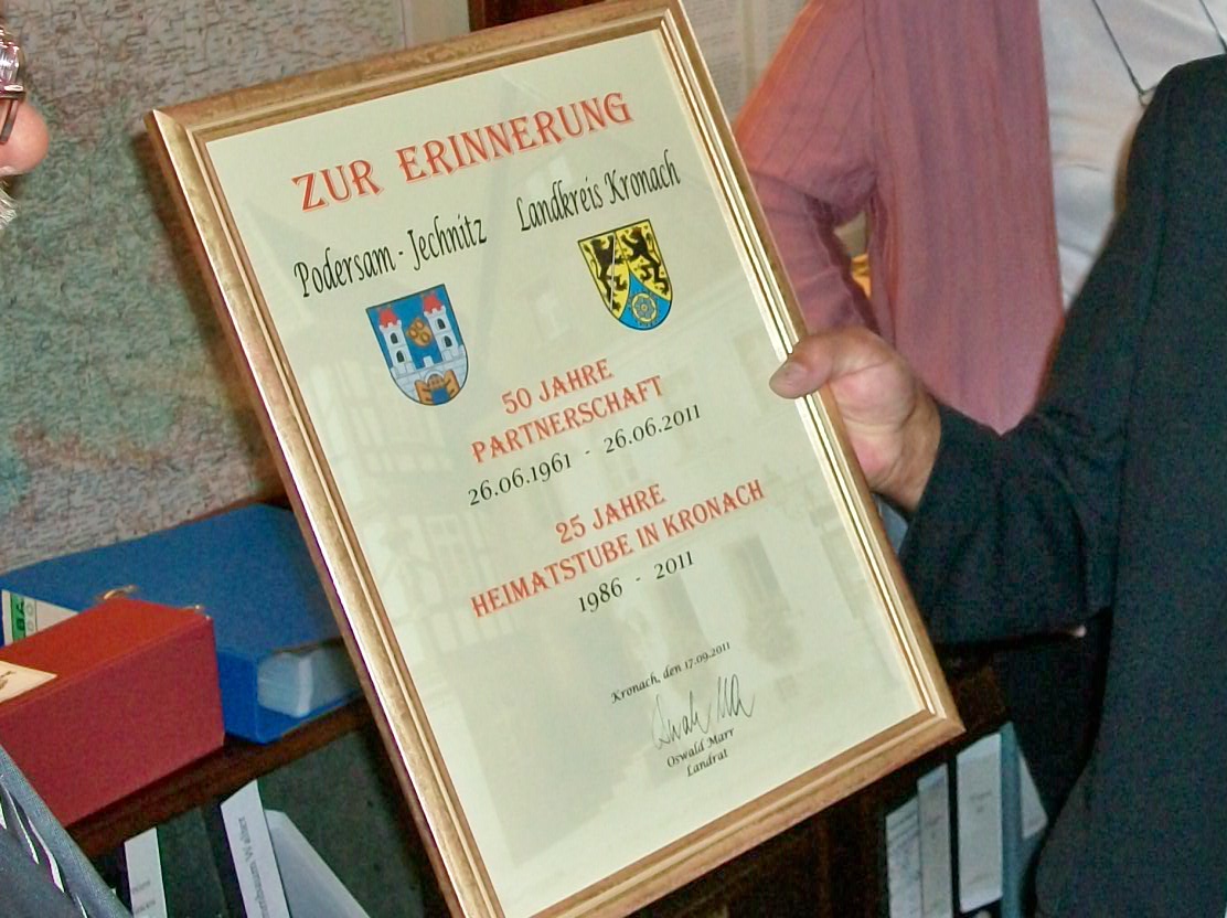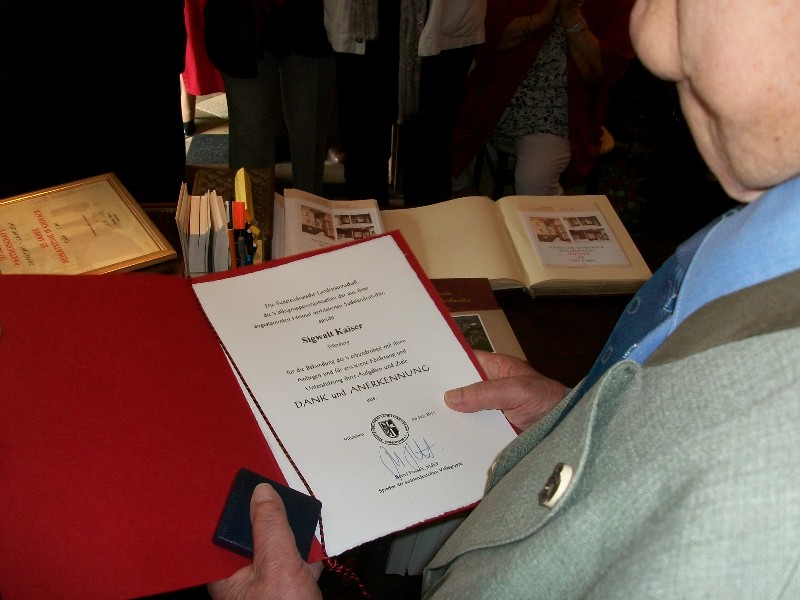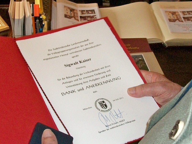 Ehrung durch Bernd Posselt Urkunde der Sudetendeutschen Landsmannschaft Dank und Anerkennung für Uta Bräuer und Sigwalt Kaiser